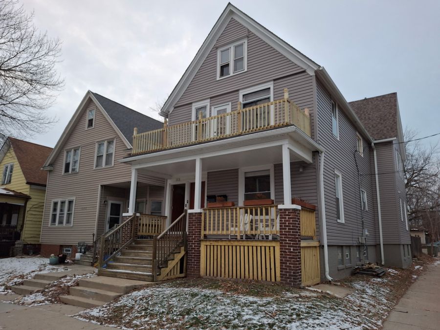 **Updated**Three bedroom, one bath upper unit in duplex available, private entrance, shared fenced in backyard, one off street parking spot, bonus room for office/den, appliances included, front and back private porch, , separate washer/dryer in basement.